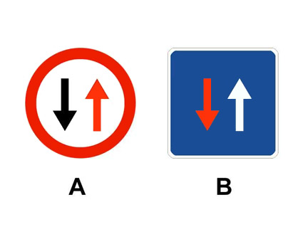 En un paso estrecho, ¿cuál de estas señales concede la prioridad de paso respecto al sentido contrario?