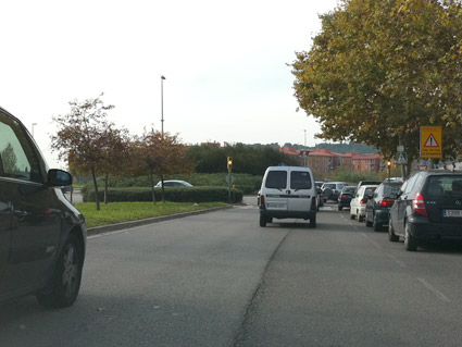 Si circulamos con nuestra motocicleta, por una vía de poblado con dos carriles para el mismo sentido, sin estar delimitados, ¿por dónde tenemos que circular?