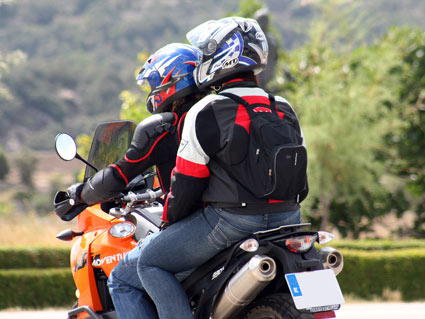 ¿Cómo debe viajar el pasajero de una motocicleta?