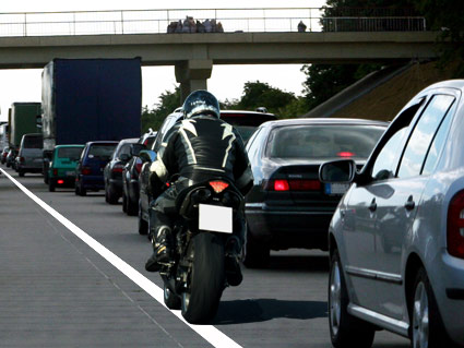 Sí, porque al encontrarse la vía saturada le está permitido adoptar esa posición en la calzada.