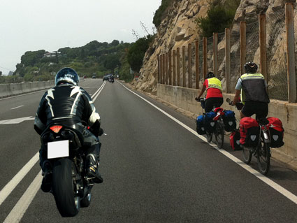 El conductor de motocicleta que se observa en la imagen está adelantando fuera del poblado a un grupo de ciclistas. ¿Qué separación lateral debe mantener durante el adelantamiento?