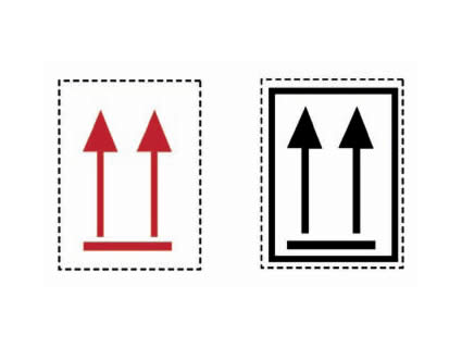 Indican la posición de pie en la que debe mantenerse el bulto o envase.