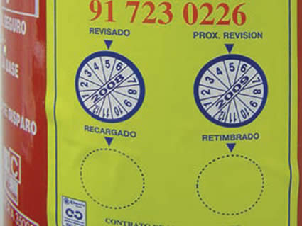 Pesado del extintor, comprobaciones respecto al estado general y la presión interna.