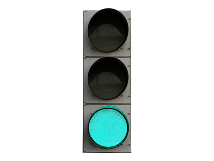 En una intersección, ¿qué indica la luz verde iluminada en un semáforo circular?