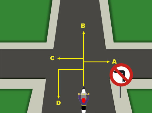 ¿Qué dirección, de las indicadas, podrá tomar el conductor?
