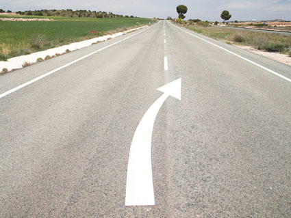 La proximidad de un cruce en el que debemos seguir la dirección y sentido que marca la flecha.