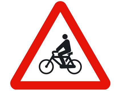 Peligro por la proximidad de un paso para ciclistas y ciclomotores.