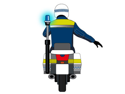 Cuando un agente motorizado extiende el brazo inclinado hacia abajo y fijo, ¿qué indica?