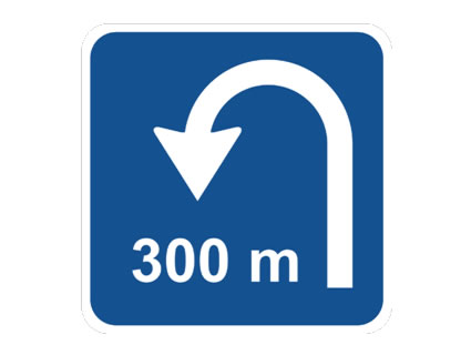 Esta señal indica que a 300 metros del lugar donde está situada, el cambio de sentido de la marcha...
