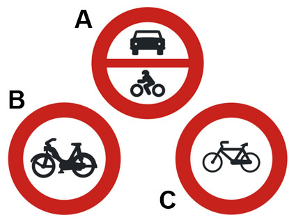 ¿Cuál de estas señales prohíbe la entrada a los ciclomotores?