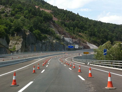 reforzamiento de las líneas discontinuas del carril.