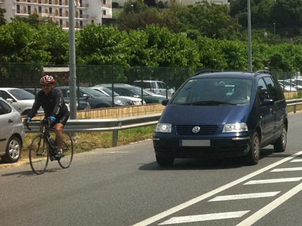 No, pues lo debería de hacer por el arcén, aunque éste no sea transitable.