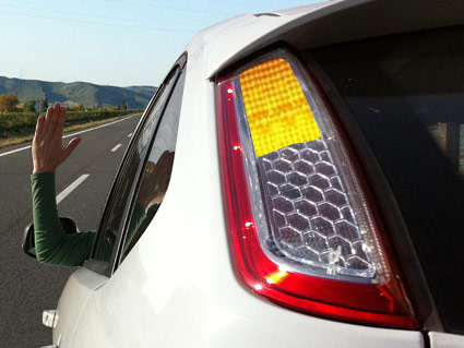 La señal luminosa sobre la realizada con el brazo.