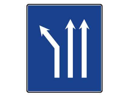 Bifurcación hacia la izquierda en calzada de tres carriles.