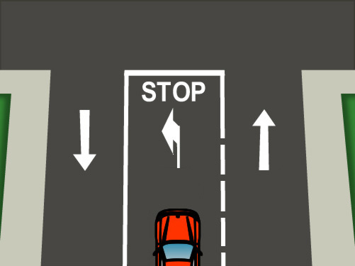Antes de la intersección sin pisar la marca vial de STOP.