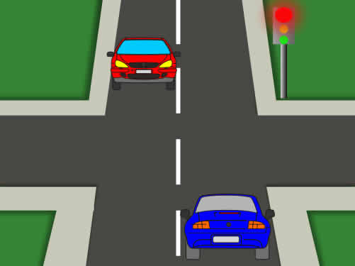 Si el vehículo azul pretende continuar la marcha cambiando de dirección hacia la derecha, ¿qué hará?