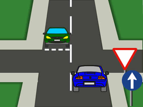 ¿Qué hará el vehículo azul al llegar a la intersección?