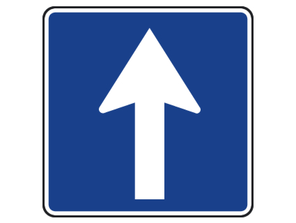 debe circular en el sentido indicado por la flecha, ya que es una calzada de sentido único.