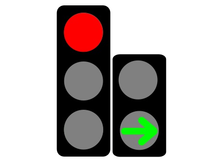 Que puedo girar a la derecha cuando se encienda la luz verde del semáforo principal.