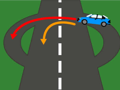 El vehículo azul está efectuando un cambio de sentido, ¿qué trayectoria será la correcta?