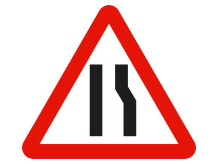 Que la calzada se estrecha por el lado de la derecha.