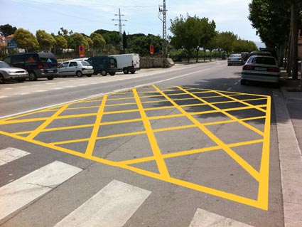 Una cuadrícula de marcas amarillas pintada en el suelo indica...