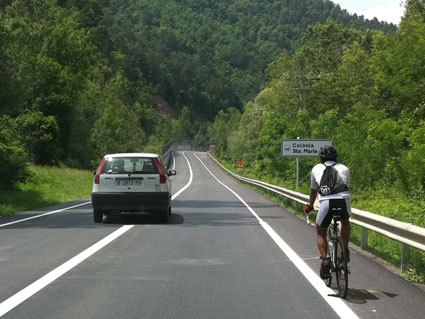 En este momento no puedo adelantar al ciclista porque la línea continua me lo prohíbe.