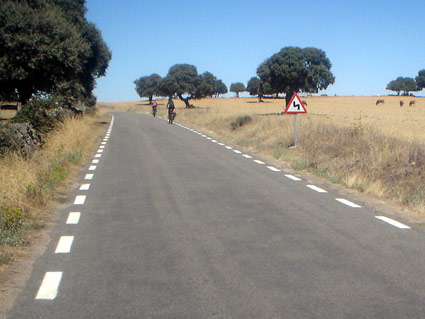 Por la calzada, lo más cerca posible del borde derecho.