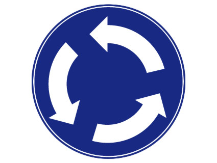 Al llegar a una glorieta encontramos esta señal, ¿qué debemos hacer si pretendemos cambiar de dirección a la izquierda?