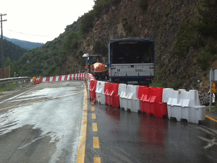 En una zona de obras en la que se ha producido un estrechamiento de la calzada, ¿qué vehículo tendrá preferencia si no hay señal que la regule?
