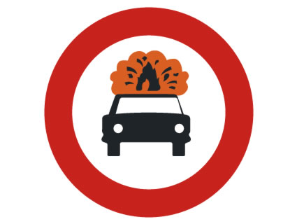 Entrada prohibida a vehículos que transporten mercancías explosivas o inflamables.