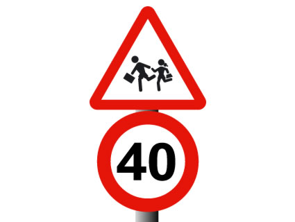 El límite de velocidad en un tramo frecuentado por niños.