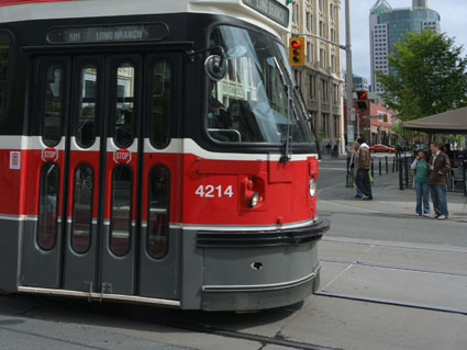 En esta vía de doble sentido de circulación, ¿por dónde adelantará al tranvía que circula por el centro de la calzada?